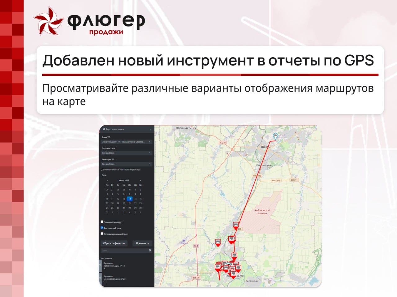 2️⃣ Фактический трек — трек о передвижении торгового представителя, который получен с мобильного клиента;