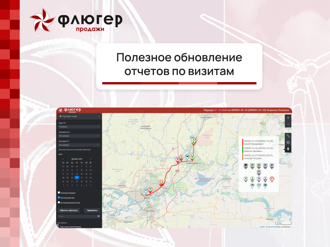 В отчет по визитам добавлен просмотр маршрутов нескольких торговых представителей одновременно.